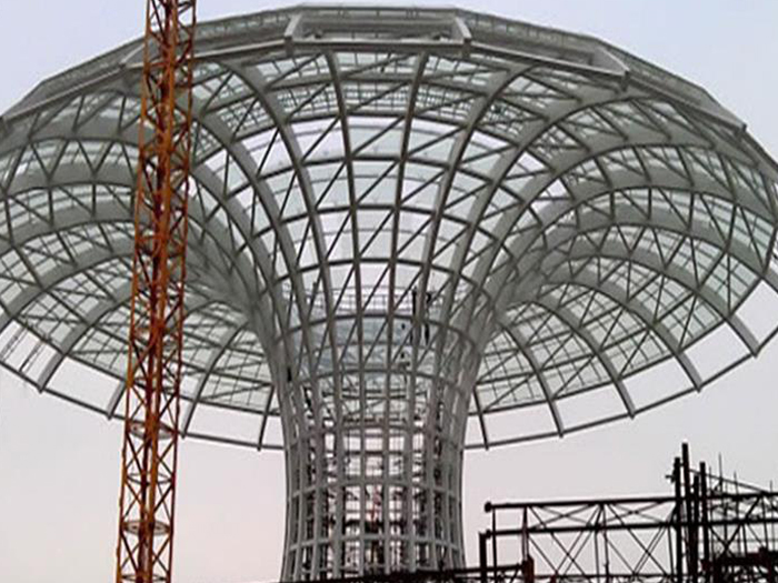 二、球形网架结构因其结构新颖,受力合理,自重轻、用钢量低等优点。如大型体育场馆球形新余螺栓球网架、公共场馆球形网架、电厂新余螺栓球网架、水泥工业球形网架、仓储物流球形网架、新余干煤棚工业球形网架、新余收费站新余加油站球形网架、展览中心、影剧院、商场、航站楼、候车厅、工厂新余车间、仓库、电视塔等球形螺栓球节点网架。国内球形网架结构主要分为:新余焊接球节点网架及螺栓球节点网架两种。螺栓球节点网架其构件工厂内加工量较大,现场安装便捷,适用于现场工期紧,新余施工条件、用电量受制约,网架形状复杂、新余杆件定位困难的异形结构。螺栓球节点球形网架系统基本由新余杆件、螺栓球、支撑支座等组成。按照节点形式可分为交叉新余桁架体系、四角锥体系、三角锥体系等。支撑方式多为固定支座支撑。对于大面积、大跨度及有特殊受力或伸缩要求的网架结构可采用橡胶支座、滑移支座、球铰支座等支撑形式,以满足结构自身的受力稳定、均衡,便于内力释放等设计要求。